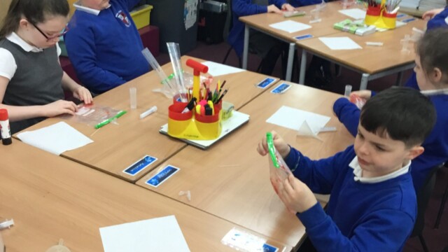 In Year 4 the children explore sound and make their own instruments; a shrieking balloon, a straw oboe, a comb saxophone and a bottle orchestra. They then explore how to change the pitch of their instruments. In their states of matter work they compare and group materials according to whether they are solids, liquids or gases. They observe that some materials change state when they are heated or cooled.