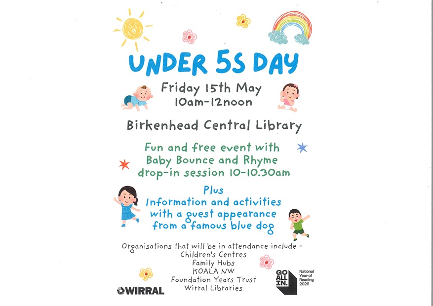 Birkenhead Central Library -Under 5s Day (for children not currently attending school) April 20, 2026